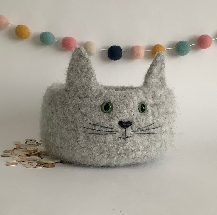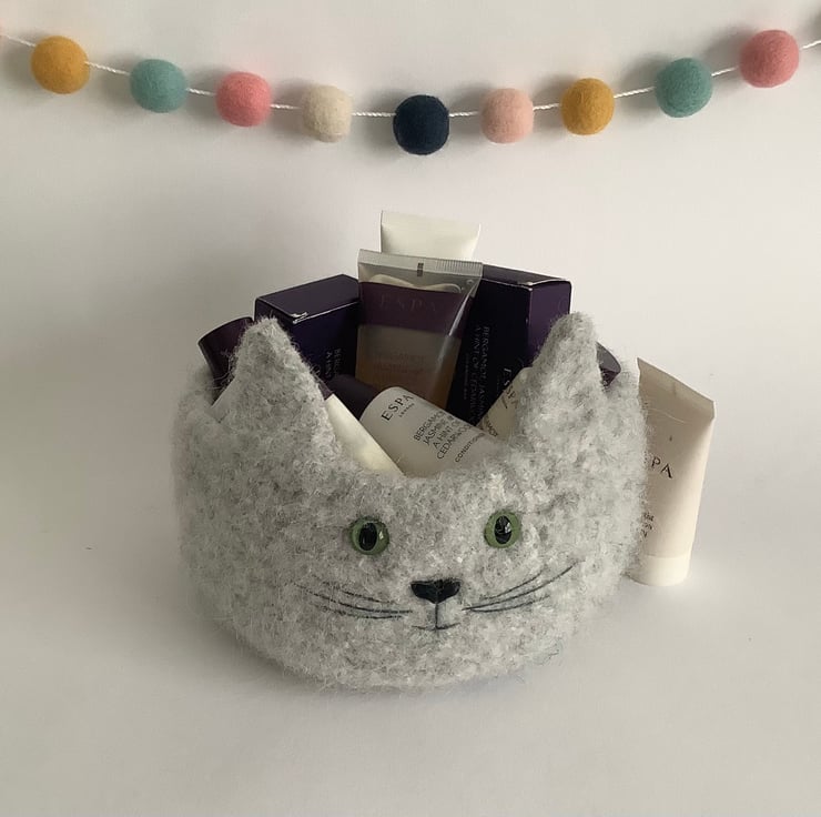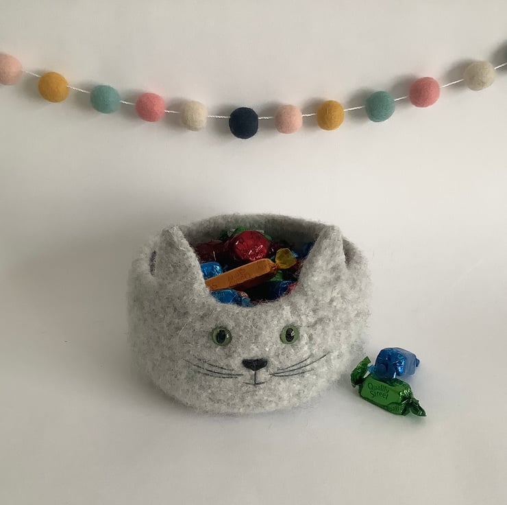 I have designed and made this perfectly useful , fun , OOAK , 'Fusspot' bowl / desk tidy using 100% pure wool . What a sweet feline ! perfect for the kitty lover!