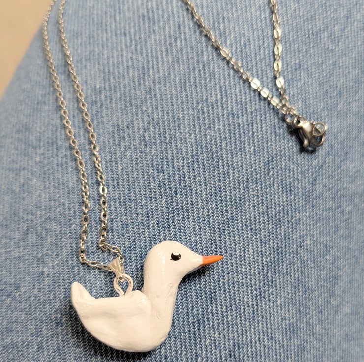 This lovely mini white goose has been handcrafted from air dry clay and then hand painted and varnished, the silver chain is made from stainless steel and is 45cm in length with a lobster clasp.