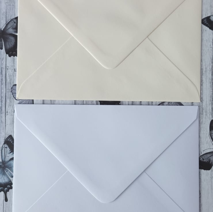 Pack of 10 Ivory c6 envelopes, 120gsm with diamond flap.