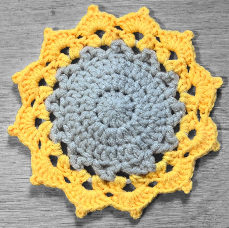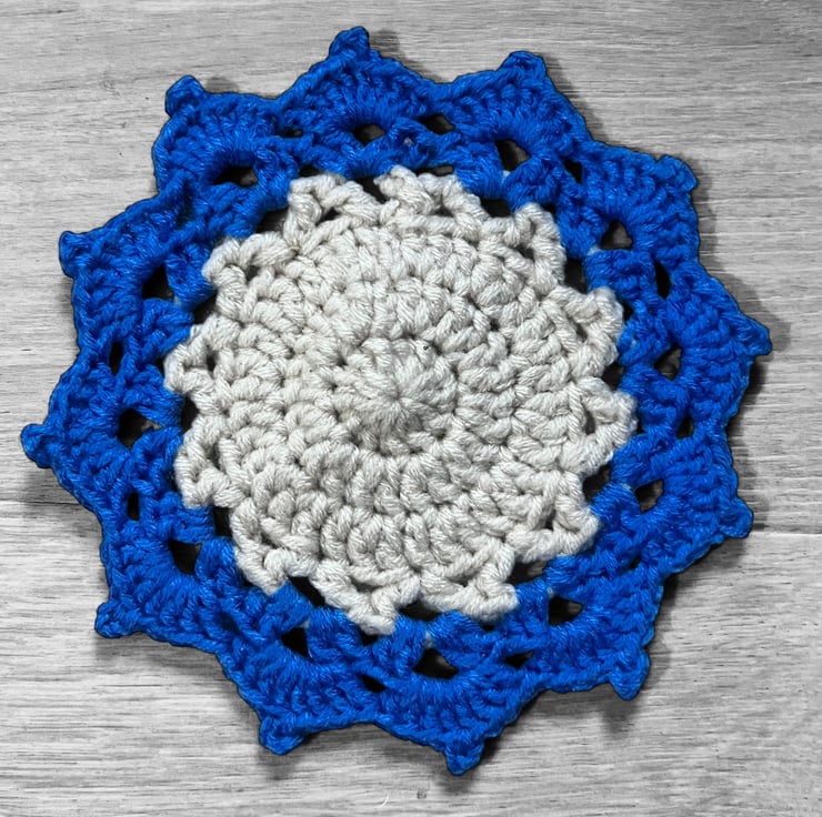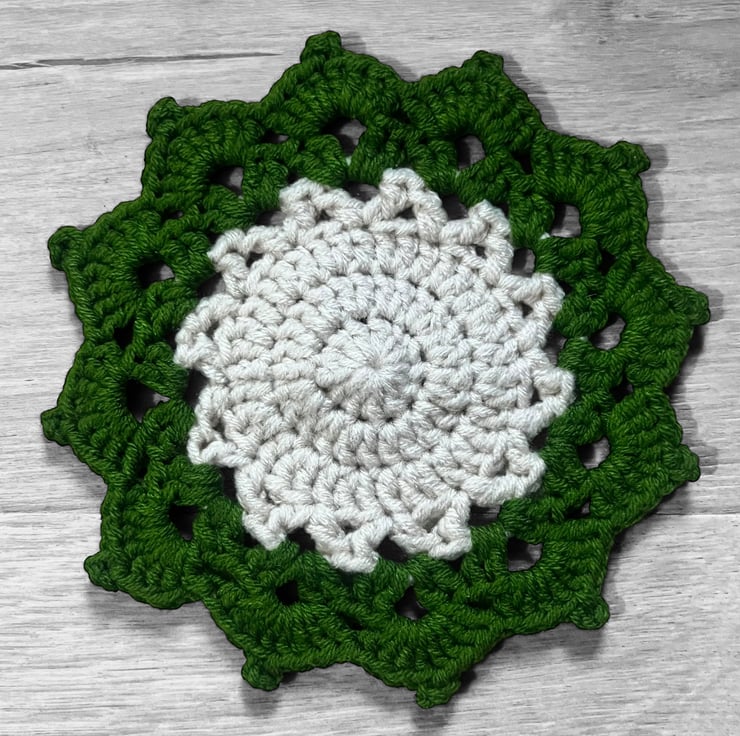 I was wanting to make some new coasters, and I saw a picture of a kit that I liked so I bought it. I wasn’t completely happy with how the coasters and basket were so I changed the design a bit and this design was the result. I thought they would make lovely gifts for people to give so I made a few in different colours.