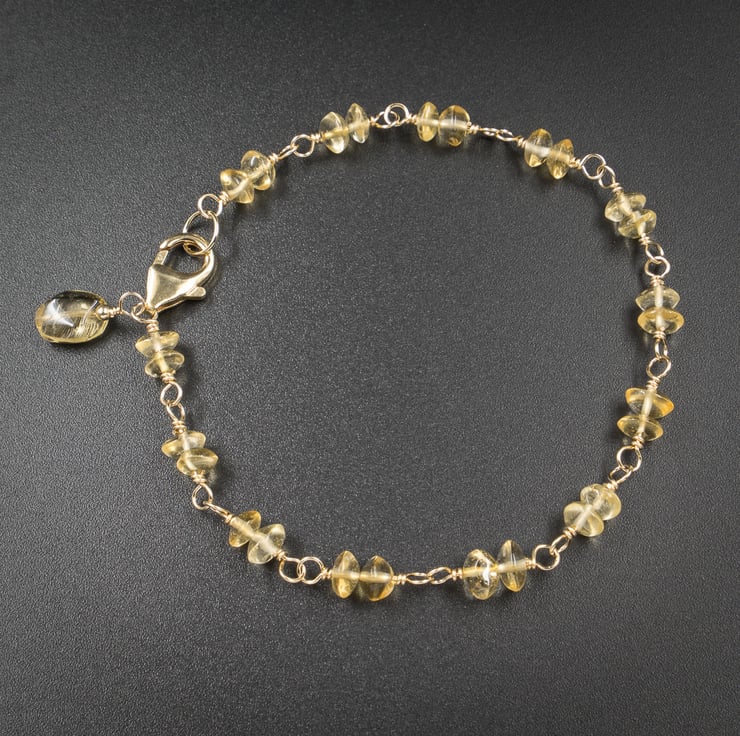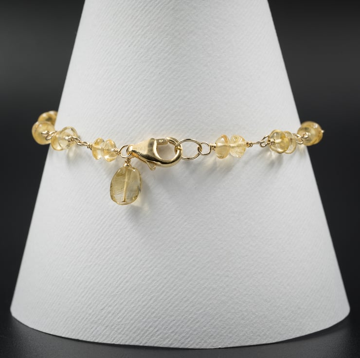 The bracelet closes with a gold filled lobster clasp and ring, the design is completed with a citrine drop charm.