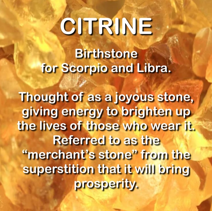 Citrine is one of the birthstones for Libra and Scorpio.