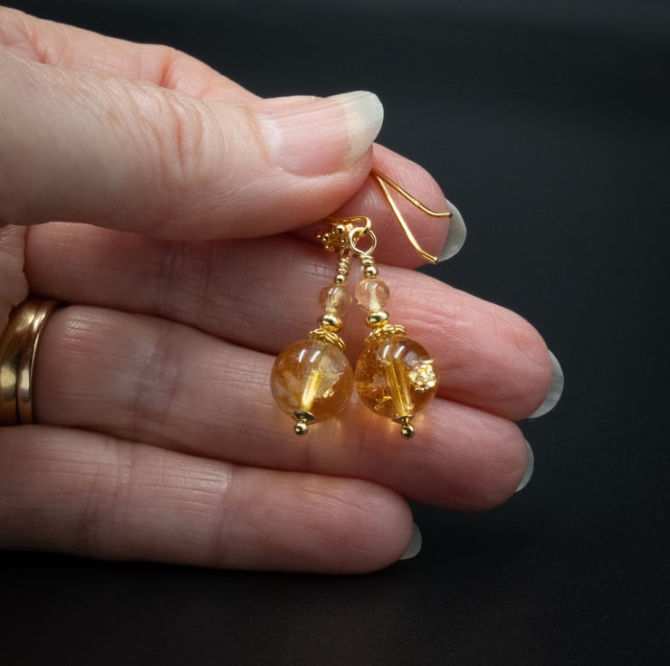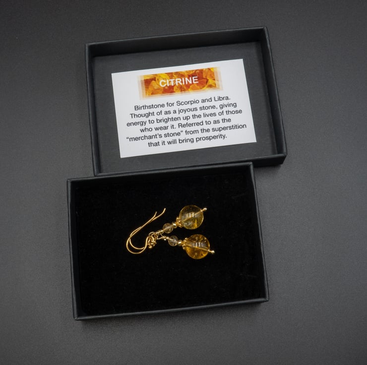 Citrine vermeil gold handmade gemstone drop earrings : Scorpio Libra gift