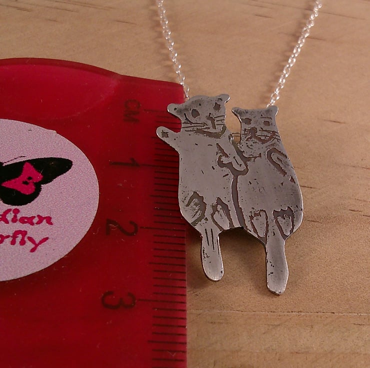 A cute pair of loving otters holding hands has been hand made into a necklace using 100% recycled sterling silver. An ideal Valentines or Anniversary gift for a lovely couple, as otters mate for life and hold hands when they sleep so that they don't lose each other!
