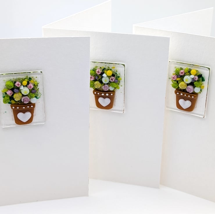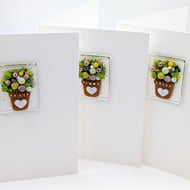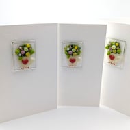 This fused glass card resembles a miniature garden you can hold in your hand.