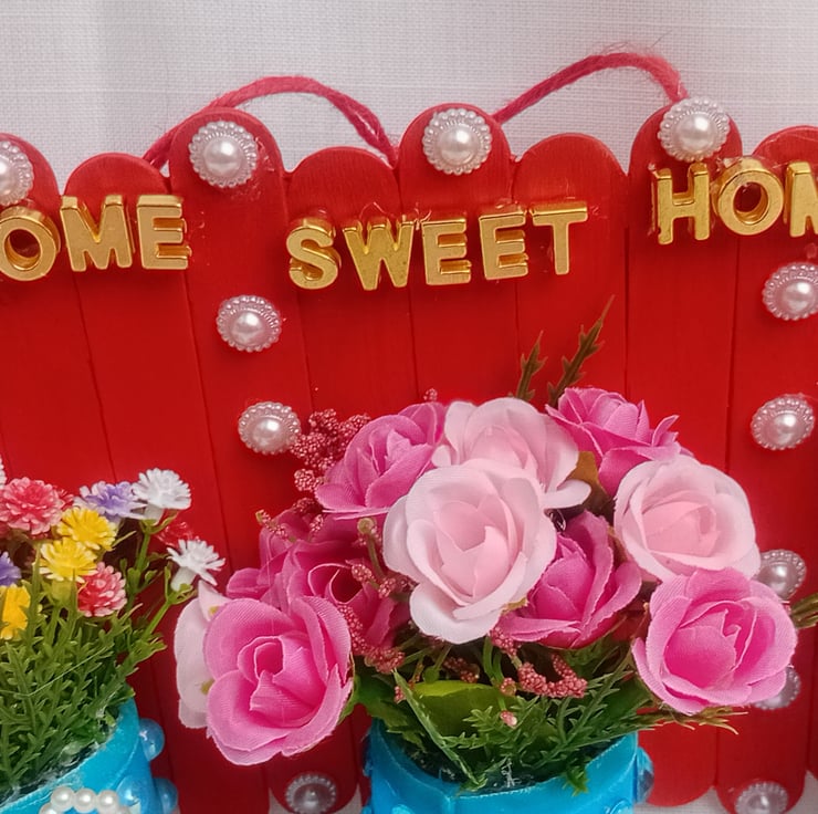 Handmade Home Sweet Home floral wall decoration.