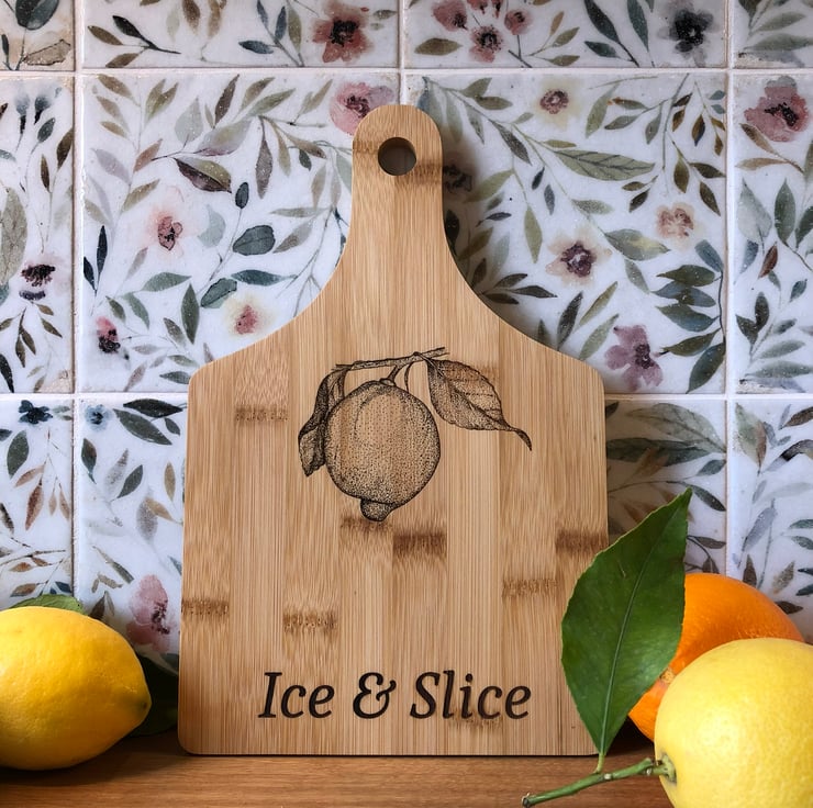 Small bamboo chopping board or bar board laser engraved with original artwork