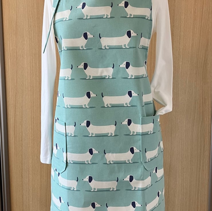 Enjoy whizzing around the kitchen wearing this beautiful baking themed fabric apron - no one will care what the food tastes like because you will look fabulous! The apron features 2 patch pockets and an adjustable neckban - measurements below: