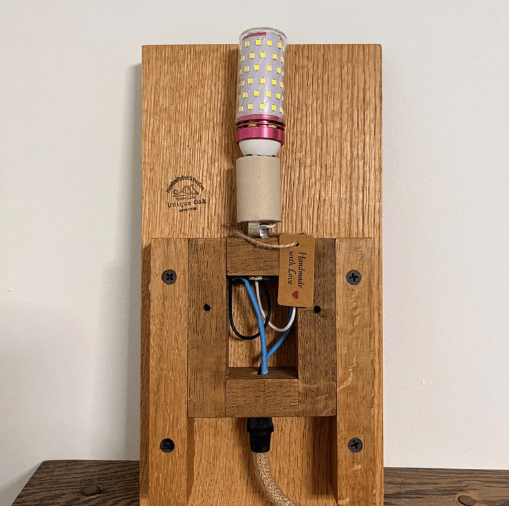 Attached to the insert is a jute-covered power cable and the switch on the cable visible in the photo, a porcelain socket, and the decorative “corn” style LED bulb, exactly as shown in the photos, the bulb is invisible when mounted anywhere on the wall.