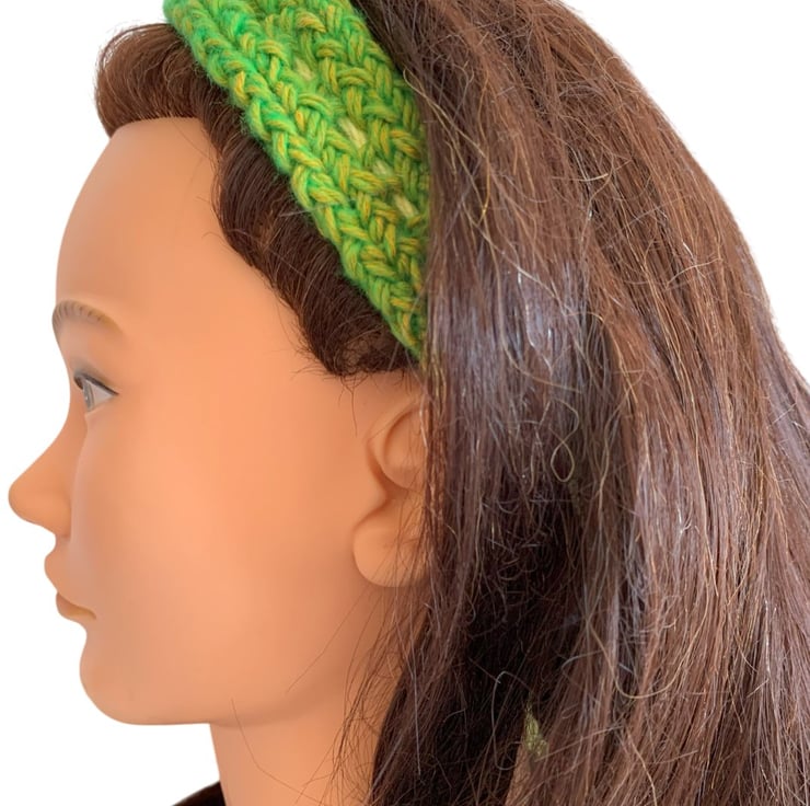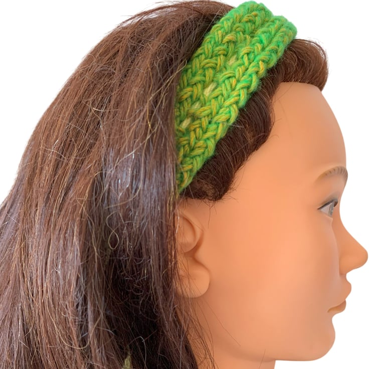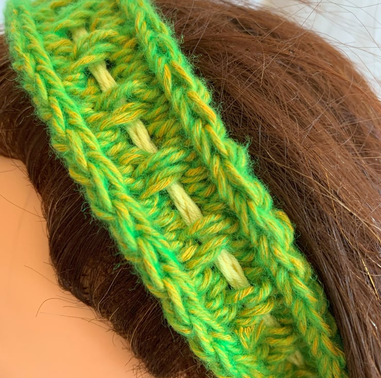 Green Yellow Handmade Knitted Hair Band Hairband Headband Adjustable tie to fit