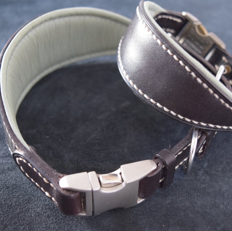 The collar is finished with the grain side of the leather on the outside, providing strength, durability, and a clean, timeless appearance. The padding is Lamb nappa with 2mm foam padding for extra comfort