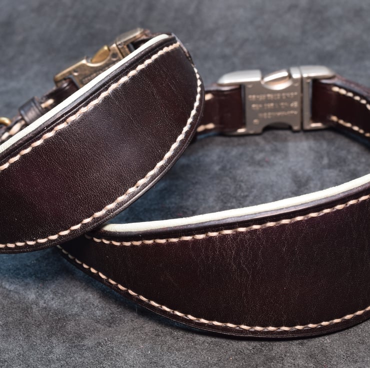 Handmade Padded Leather Dog Collar – UK Made, Greyhound, Lurcher, Whippet