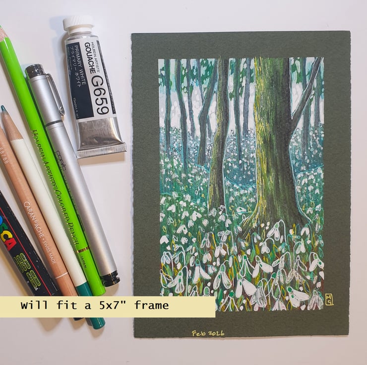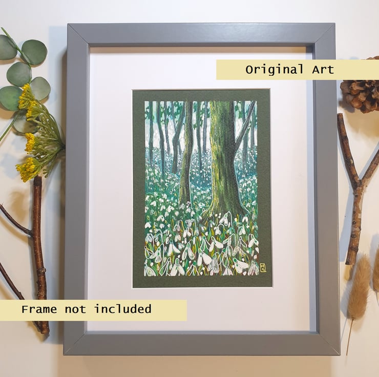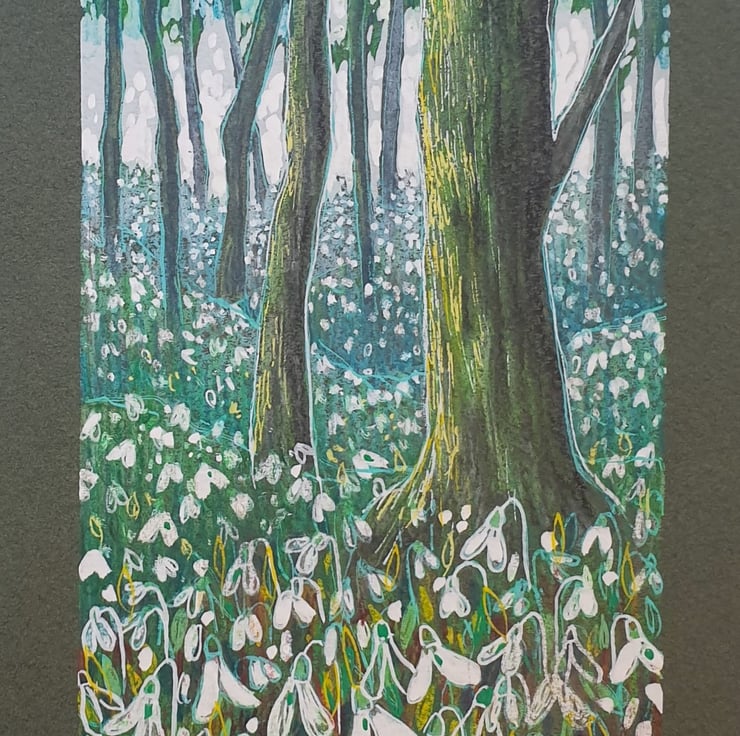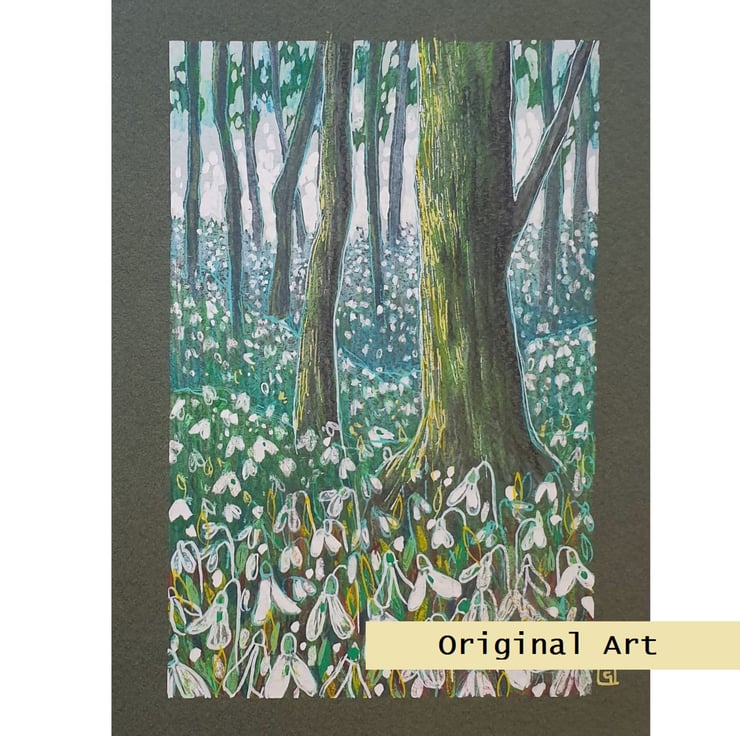 Snowdrop Woodland, an original artwork, landscape art, wall art
