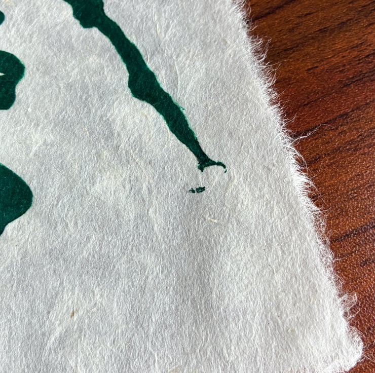 I've listed this original linocut as a second because there is a small ink mark at the bottom of the stem. Other than that, it looks lovely and you might even enjoy the extra handmade character these tiny quirks give the piece! The print is made on beautiful handmade Himalayan paper, which has a translucent quality where you can see all the natural fibres. It also features a deckled edge that makes each piece feel truly special. The print measures approximately 15.5 x 20.5 cm, though there may be slight variations in size and texture due to the nature of the handmade paper.