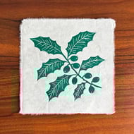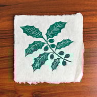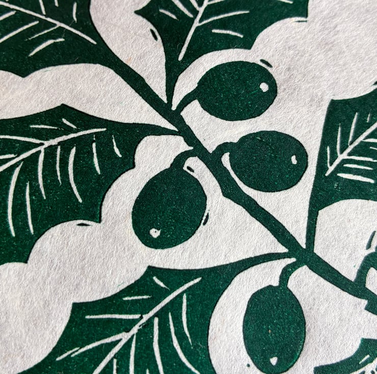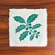 I've listed this original linocut as a second because there is a small piece of plant fibre that is just a bit larger than I would usually allow in my prints. Other than that, it looks lovely and you might even enjoy the extra handmade character these tiny quirks give the piece! The print is made on beautiful handmade paper, which has a translucent quality where you can see all the natural fibres. It also features a deckled edge that makes each piece feel truly special. The print measures approximately 15 x 15 cm, though there may be slight variations in size and texture due to the nature of the handmade paper.