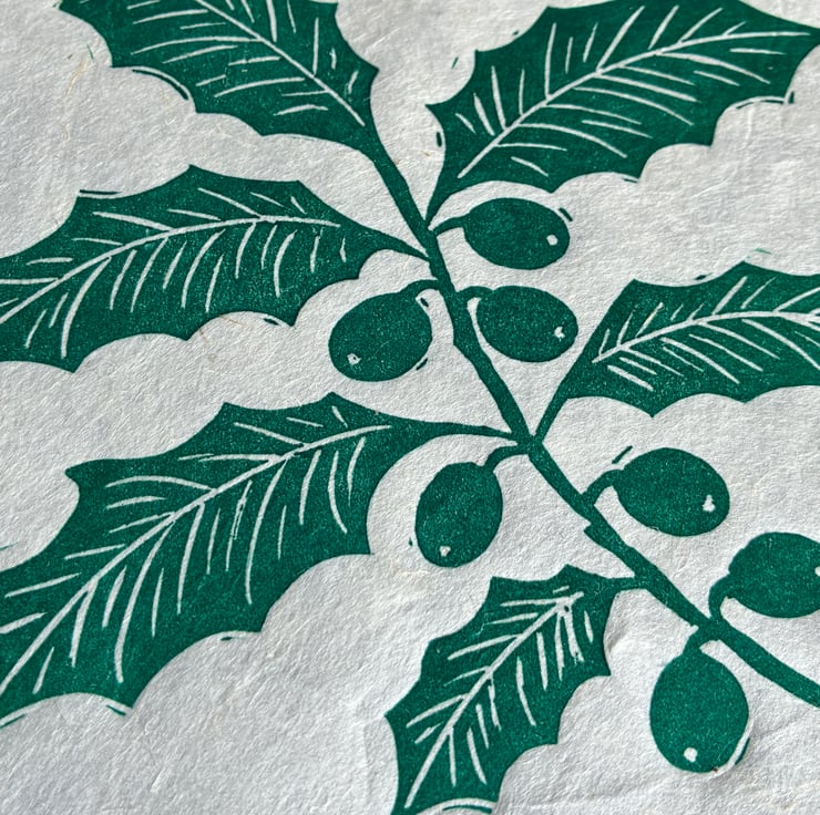 I've listed this original linocut as a second because this is a test print on a different paper than the rest of the prints I made for this edition. Theres a few minor creases in the paper which I think adds to the charm. Other than that, it looks lovely and you might even enjoy the extra handmade character these tiny quirks give the piece! The print is made on beautiful handmade paper, which has a translucent quality where you can see all the natural fibres. It also features a deckled edge that makes each piece feel truly special. The print measures approximately 16 x 16 cm, though there is slight variation in size and texture due to the nature of the handmade paper and the wispy edges.