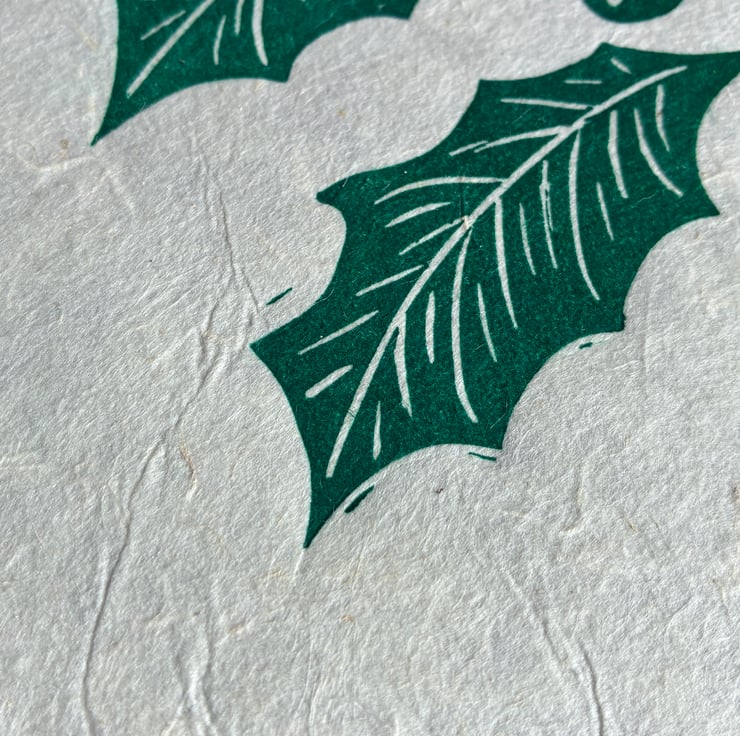 I've listed this original linocut as a second because this is a test print on a different paper than the rest of the prints I made for this edition so there is a lot of texture, which I think is kind of cool. Other than that, it looks lovely and you might even enjoy the extra handmade character these tiny quirks give the piece! The print is made on beautiful handmade paper, which has a translucent quality where you can see all the natural fibres. It also features a deckled edge that makes each piece feel truly special. The print measures approximately 16 x 16 cm, though there is slight variation in size and texture due to the nature of the handmade paper and the wispy edges.