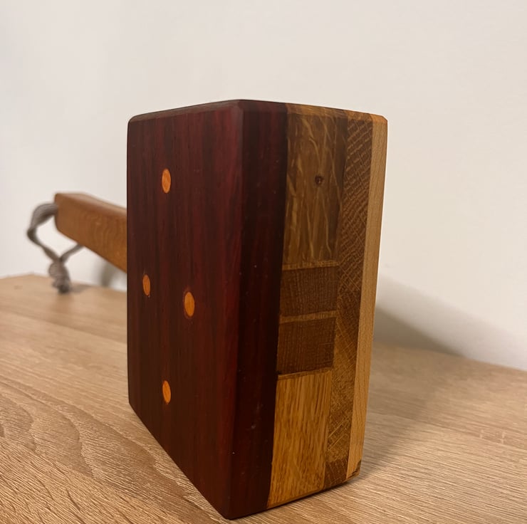 beautifully crafted wooden mallet, a perfect blend of solid oak, Padauk, and Maple wood! This stunning tool not only boasts durability but also showcases a rich, warm color palette that adds a touch of elegance to your workshop. The ergonomic design ensures a comfortable grip, making it ideal for various tasks, from woodworking to crafting.