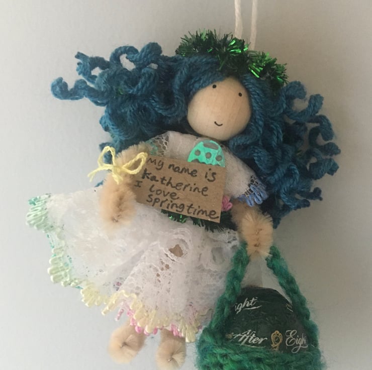 She has a tag which states her name and something that she loves. This tiny fairy is called Katherine, and she loves springtime.