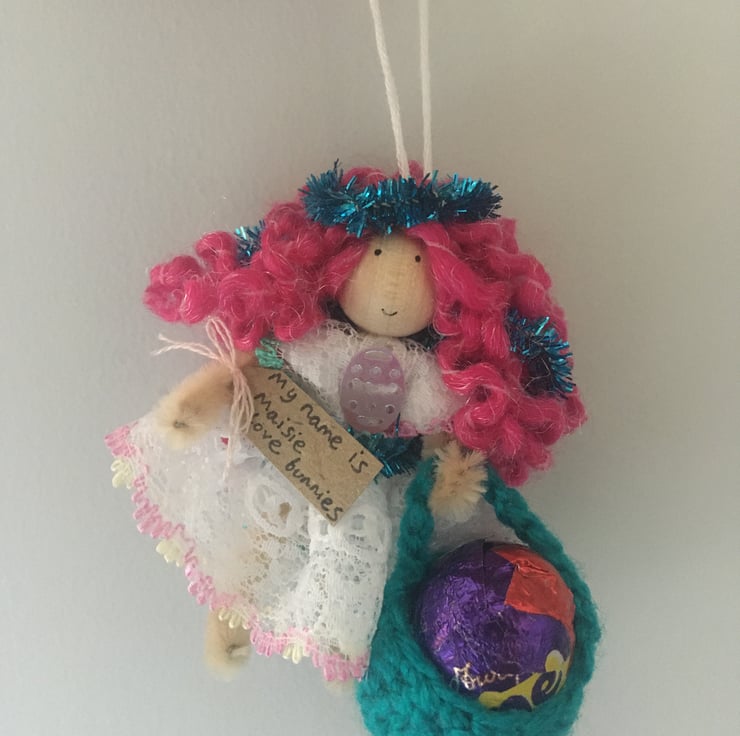 She has a tag which states her name and something that she loves. This tiny fairy is called Maisie, and she loves bunnies.