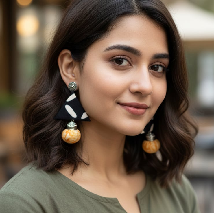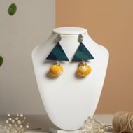 Bold, modern, and full of personality. These handmade statement fabric earrings feature a black triangle with a yellow droplet .