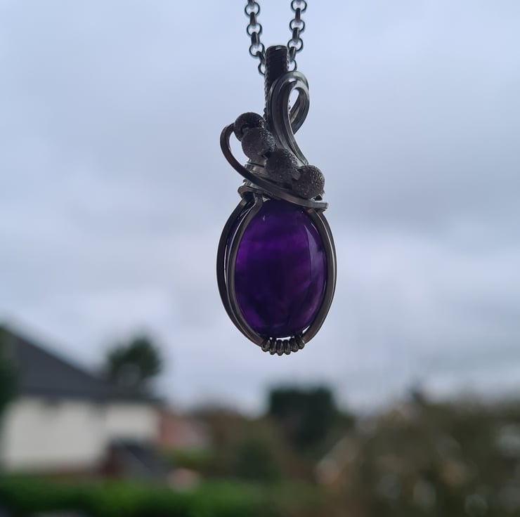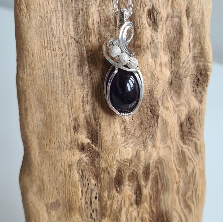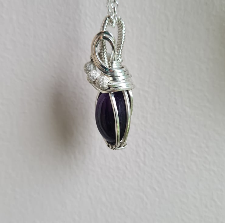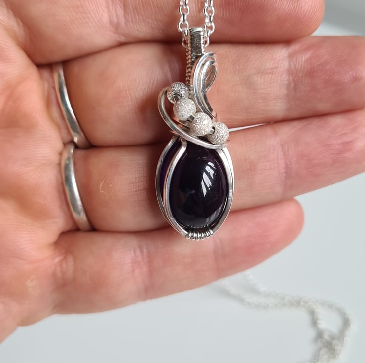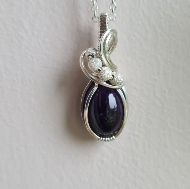 I have taken this beautiful and top quality dark purple Natural Amethyst crystal and handwrapped it in thick 925 Silver wire and finishing with the most beautiful sterling silver glitter beads. This is a lovely necklace and as Amethyst is the birthstone for February it would make the perfect birthday gift for that special someone.