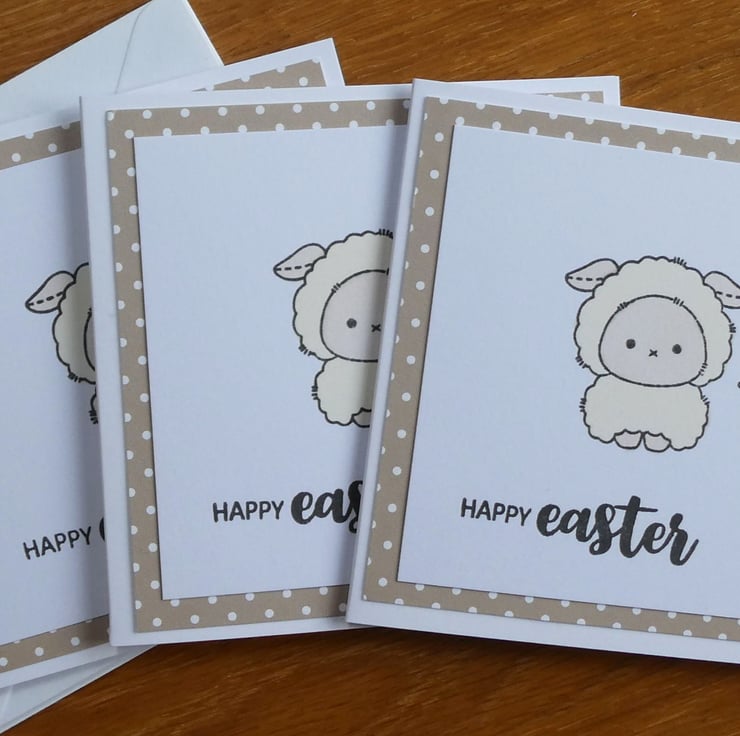 Pack of 3 Mini Easter Cards - Sheep - Fawn Polka Dots