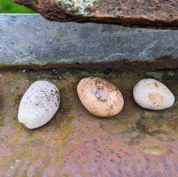 Perfectly imperfect clutch of four ceramic eggs. The exact four eggs you will receive are shown in Photos 1 and 2 (remaining photos are from my 'perfect' listing). These four eggs have been chosen as "Imperfectly Perfect" as the glaze hasn't done exactly what I expected it to, so they are a bit more quirky than the other eggs!