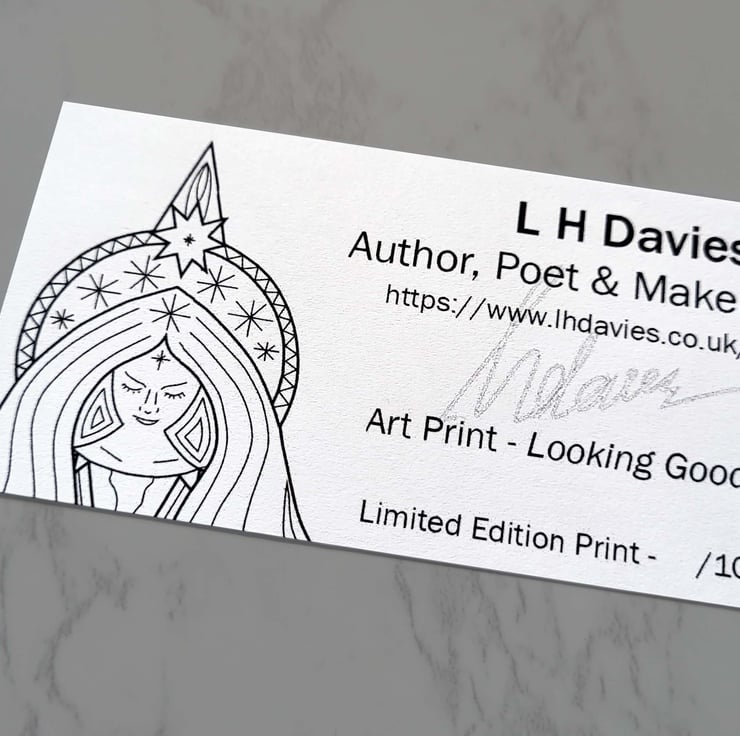 Whilst care is taken in photographing the piece please be aware that colours can vary according to your monitor settings, also various types of images are listed to give a clearer idea around colour, size and detail. The art print is best hung/placed out of direct sunlight. Copyright remains with the creator, L H Davies.