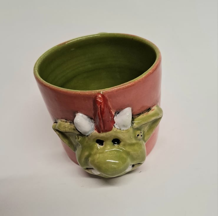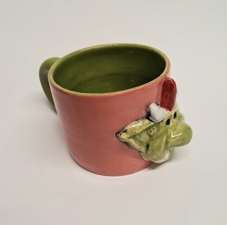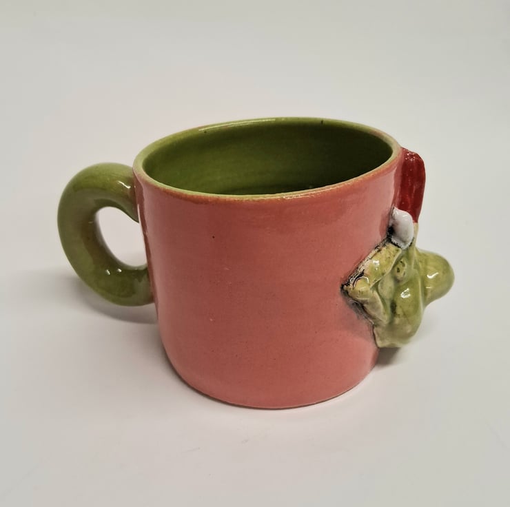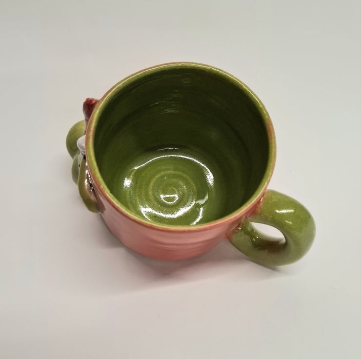 Glazed in Coral red and Apple green glazes.
