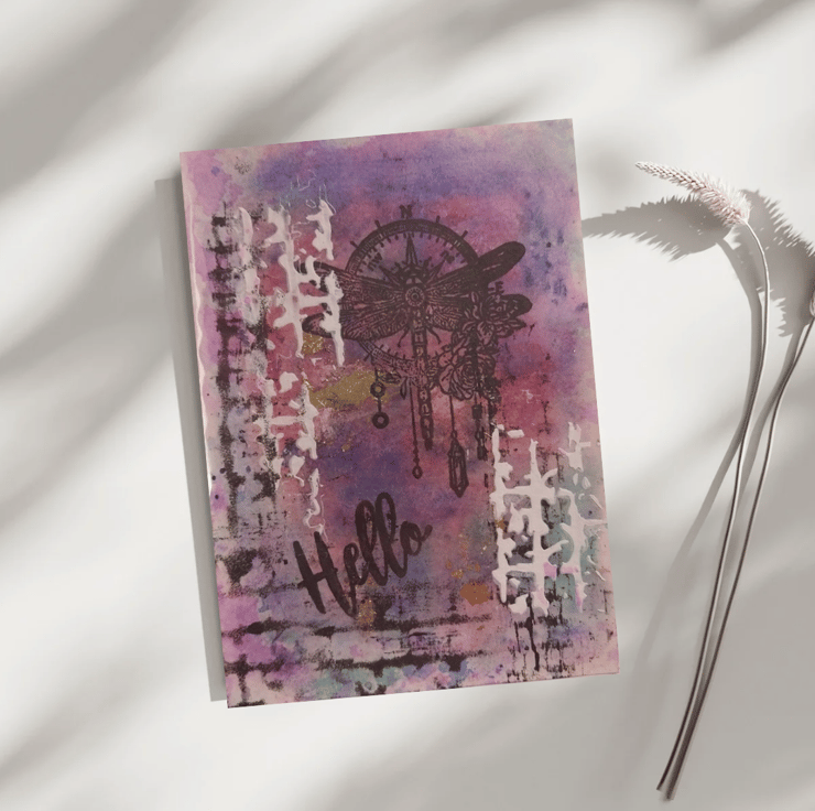 On the front page you can find dragonfly and a white texture made with artistic paste.
