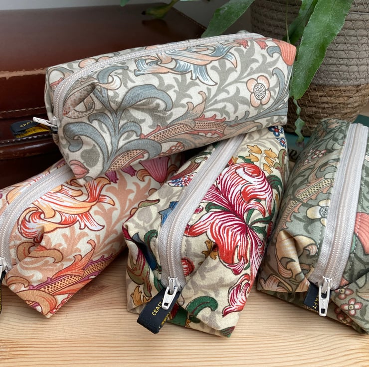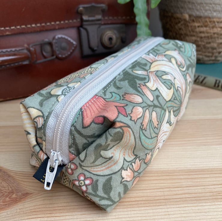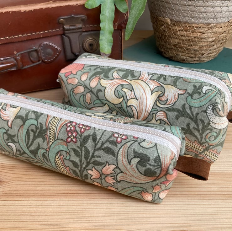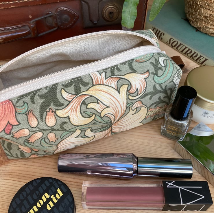 William Morris Handmade Make Up Bag - Green Golden Lily Fabric