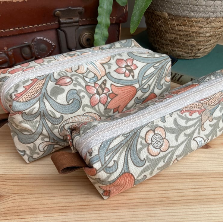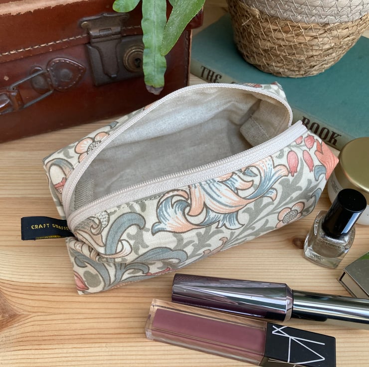 William Morris Handmade Make Up Bag - Cream Golden Lily Fabric