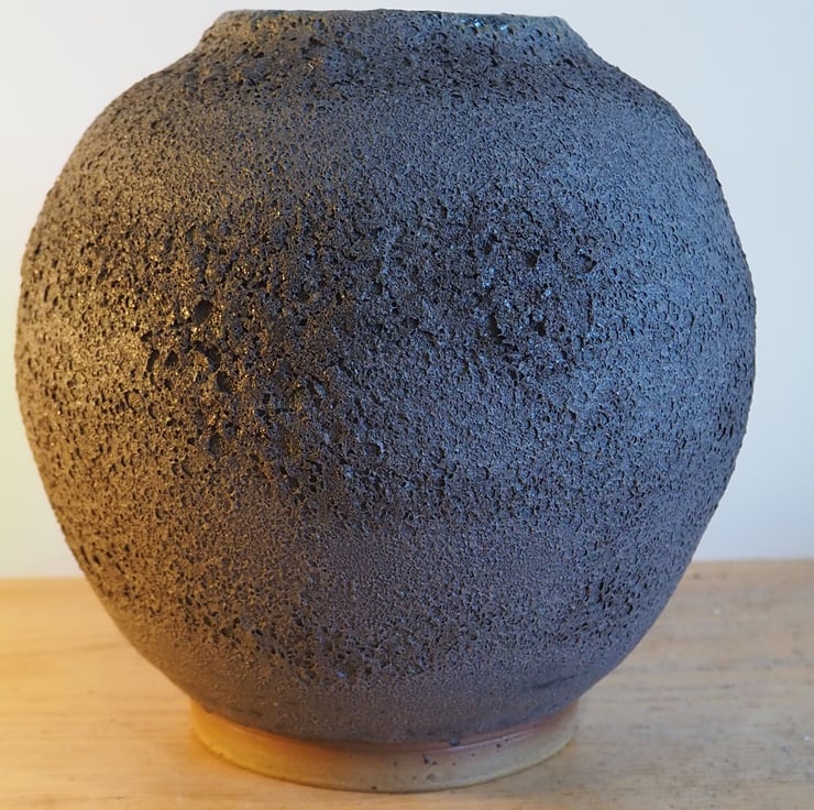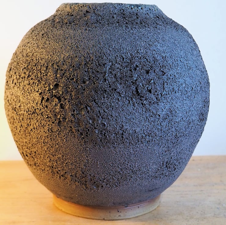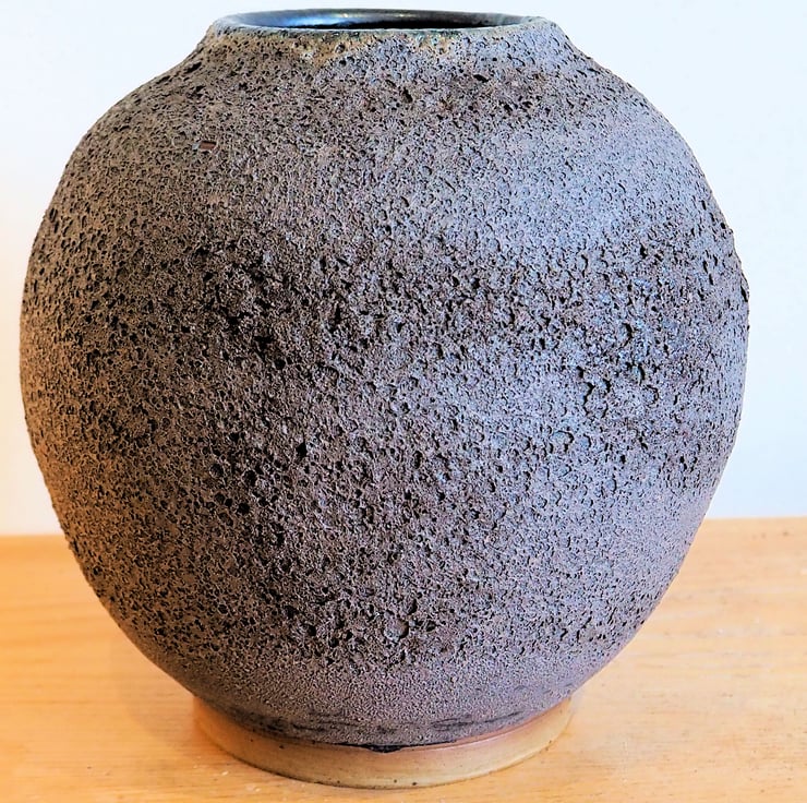 My fascination with the Korean art of the moon jar and the use of magma glazes creating a cratered textured surface.