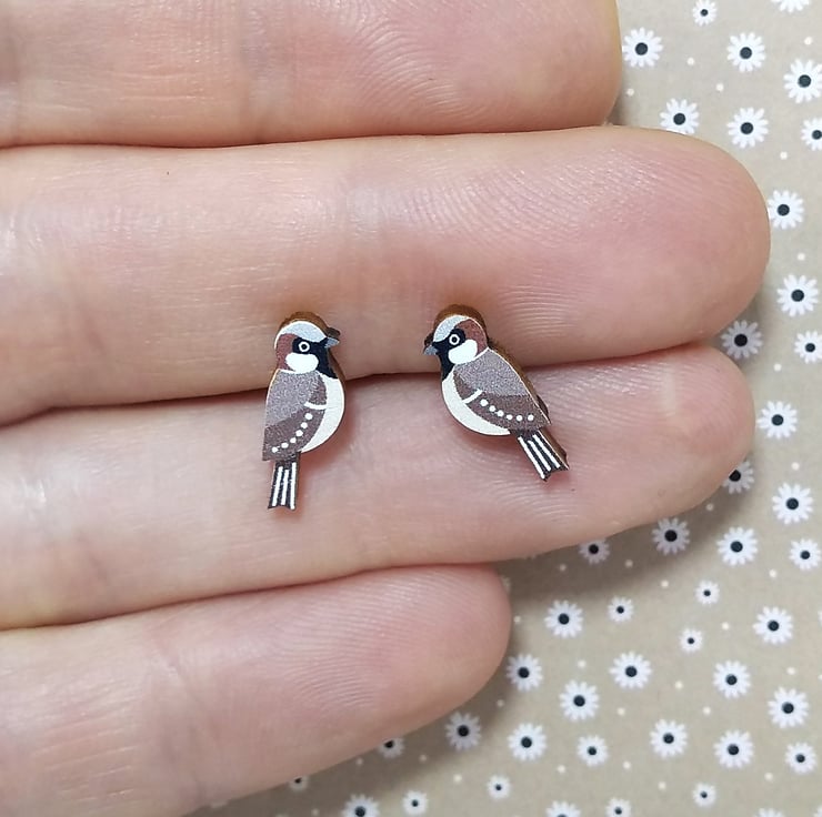 House Sparrow stud earrings.