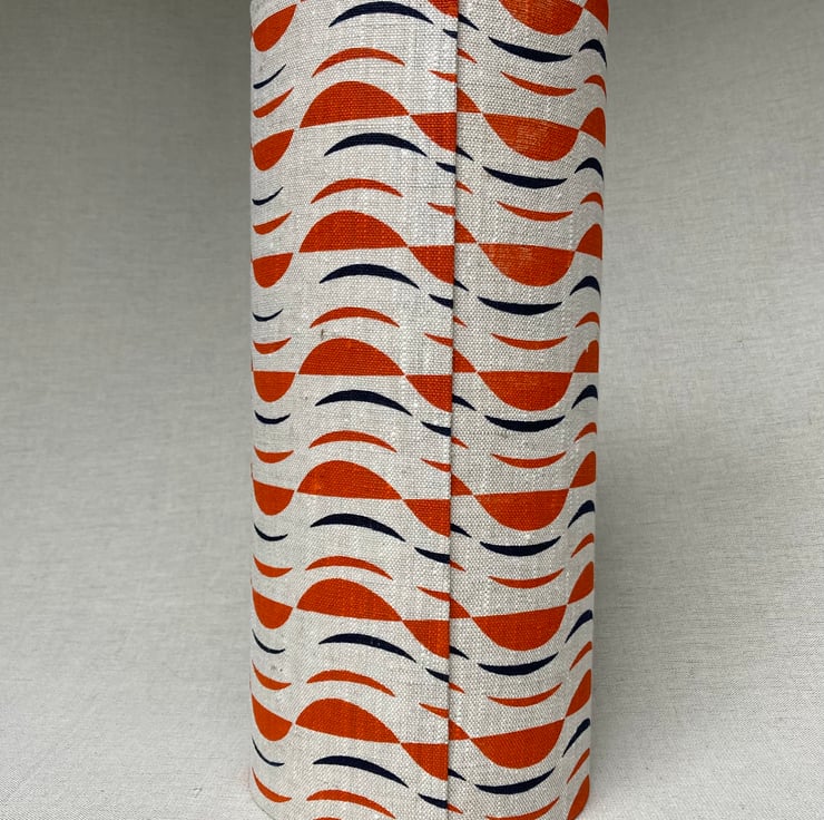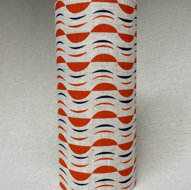 Tall hand printed lampshade in my Maronti design. Printed in two colours, orange and navy.