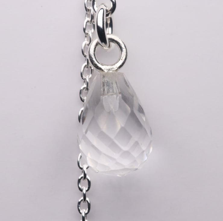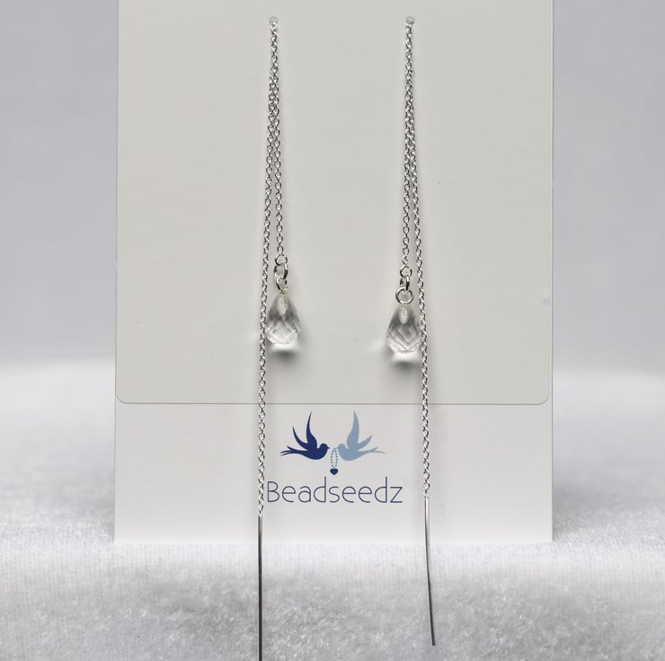Delicate sterling silver threader earrings finished with a faceted teardrop crystal quartz charm. Beautifully simple yet elegant, these earrings are perfect for lovers of understated jewellery. Ideal for a bride or bridesmaid, or to add elegance to an everyday outfit. All the metallic elements of this piece are sterling silver.
