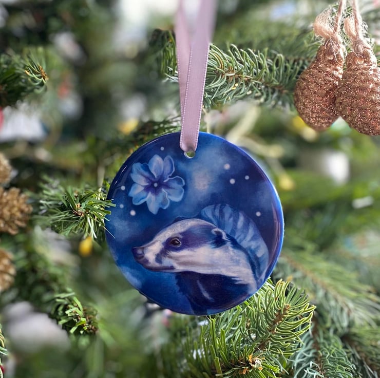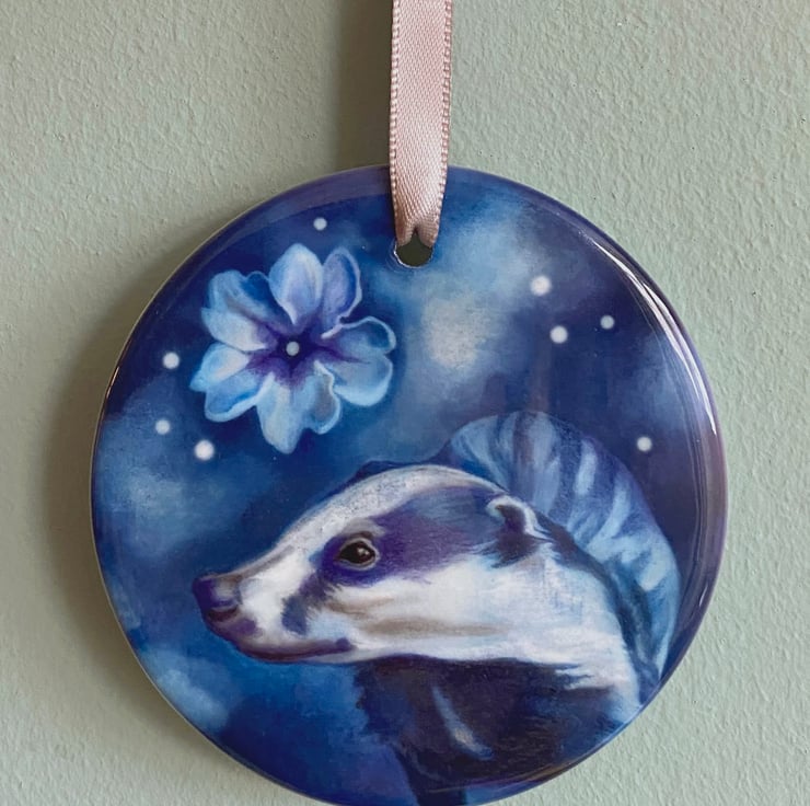 This lovely ceramic ornament shows off my Badger illustration beautifully! I created the original drawing using a combination of chalk pastels, pencils and coloured pencils.