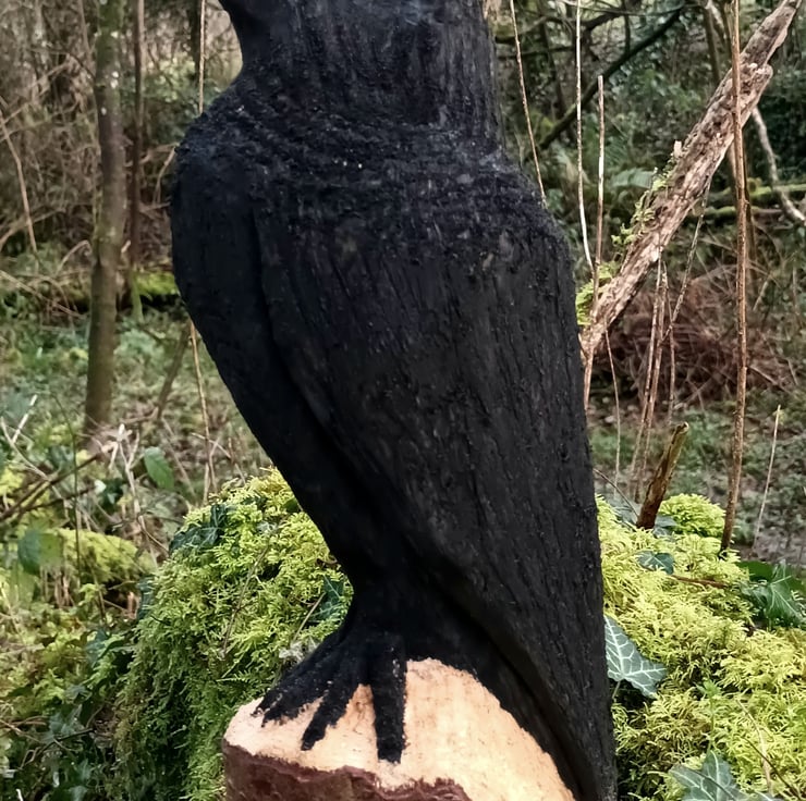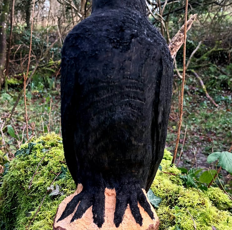 This striking black crow is chainsaw carved and hand finished from a complete piece of 'Sitka Spruce'