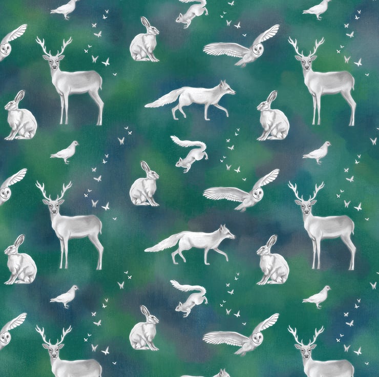 Beautiful, ethereal and delicate, I created this "Woodland Spirit Animals" wrapping paper design, using a combination of chalk pastel (for the background), pencil (for the animals) and then bringing it all together into a pattern on photoshop!