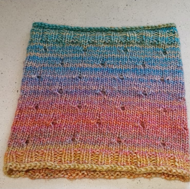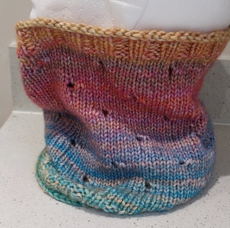 Handknit Cotton blend Circular Eyelet Cowl in pastel rainbow