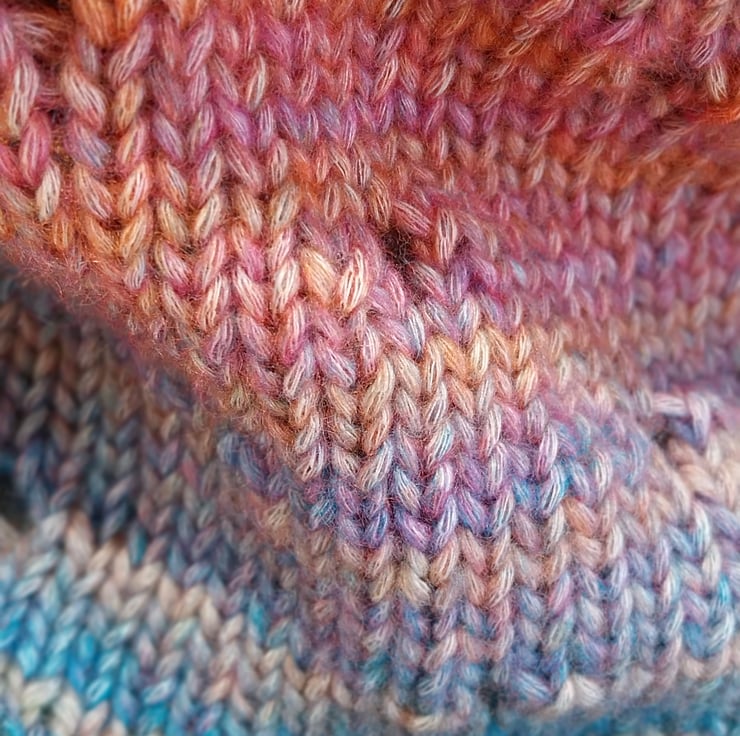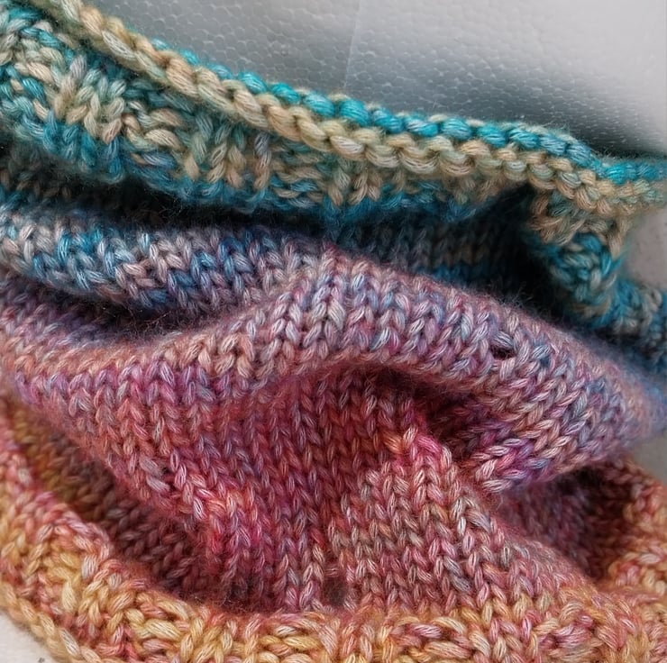 This cowl measures 50cm in the round with a depth of 24cm.