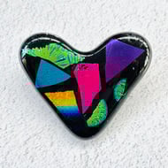 Every piece is totally unique, created from a layered mix of coloured and dichroic glass. A lot of hard and messy work goes on behind the scenes to create this design, but the results are worth it.