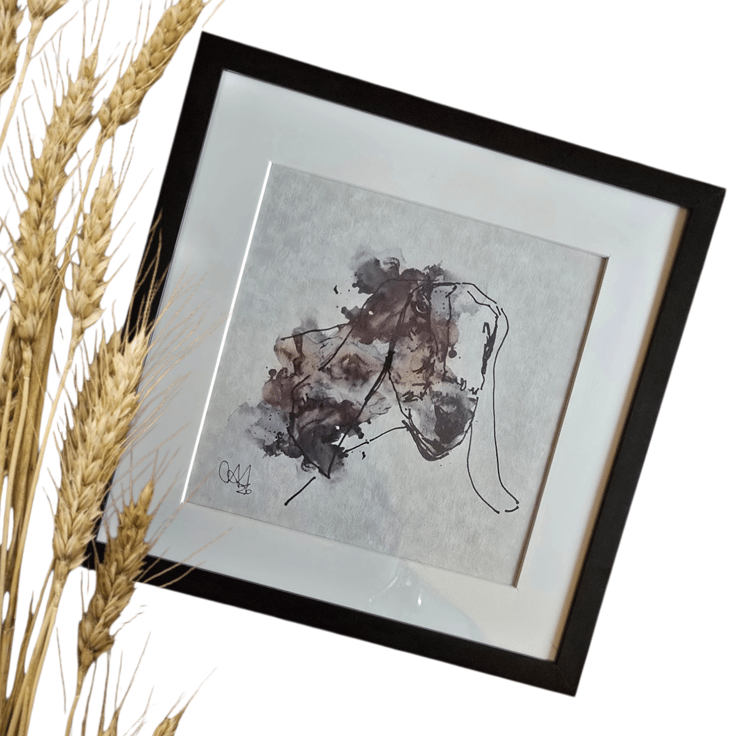 The combination of detailed line work and abstract paint makes this artwork both gentle and striking, perfect for nature lovers or anyone who enjoys farm-inspired art with a modern, hand-drawn touch.