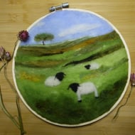 Handmade needle felted greetings card featuring an image of a man walking his dogs. Each of our handmade cards is 6 inch and comes with a matching envelope and cellophane bag.