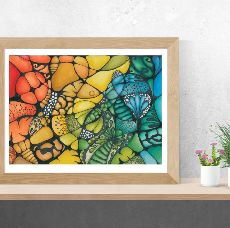 Jitter bug - A Colourful Abstract wall art print in gorgeous rainbow colours. Printed from Original Artwork created with alcohol ink markers