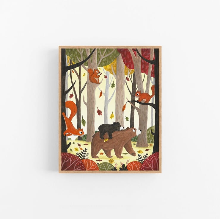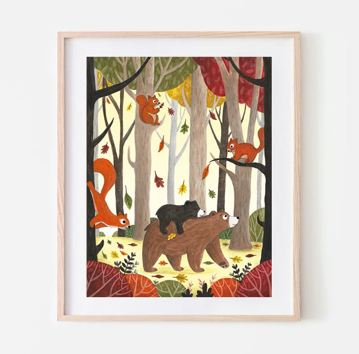 - Baby bear is exhausted after spending his first day out on an autumn's day! There are so many different colour leaves out there!