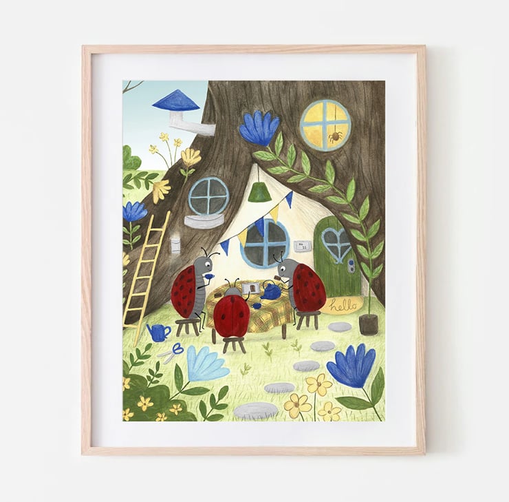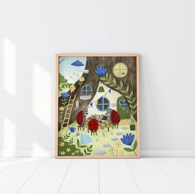Ladybird tea Party - Tea lover - Summer - children illustration - A4 art print