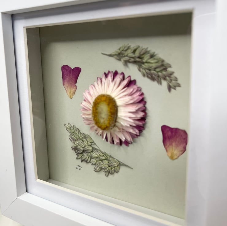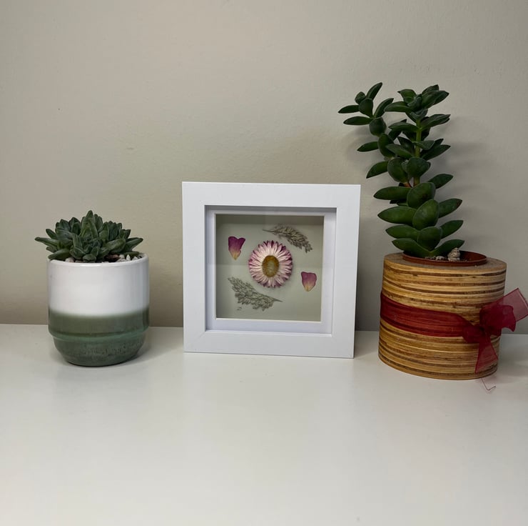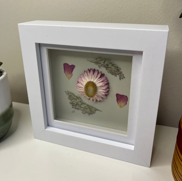 Pressed Rose Petals, Dried Strawflower, Framed Art, Mother’s Day, birthday gift