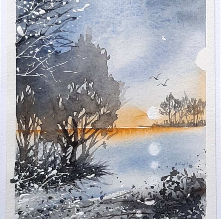 Painted on watercolour paper and mounted onto quality, white card stock, which has a slight texture. The painting is protected by two coats of satin varnish.